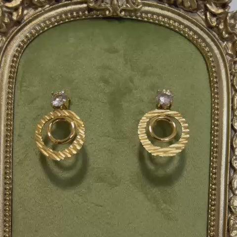 Handcrafted with 18K gold plating over stainless steel, these earrings are anti-tarnish, hypoallergenic, and crafted to retain their luster season after season. The textured ring design reflects artistry in motion, making it an instant head-turner—whether paired with sleek formals or elegant dresses.